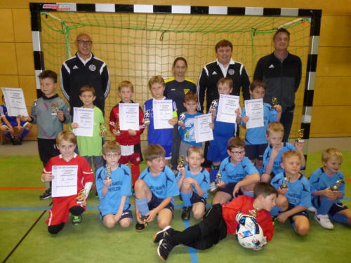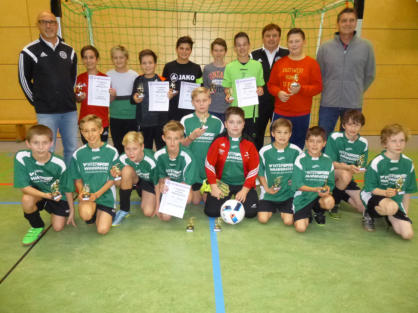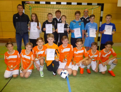 zweitägigen 4.TradeXtra-Juniorenhallencup 2016 des Sportvereins Michelsdorf. Stolz präsentieren sich die Sieger und die